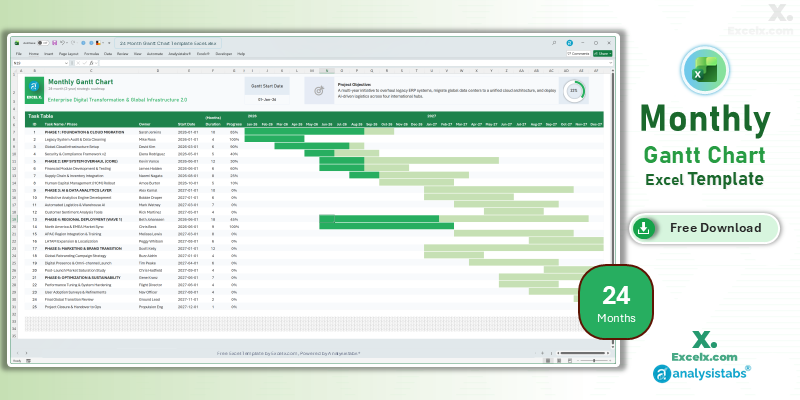 Take control of your project timelines with our ultimate collection of free, automated Gantt chart templates for Excel. From hourly event trackers to 24-month strategic roadmaps, find the perfect professional tool for your workflow today.