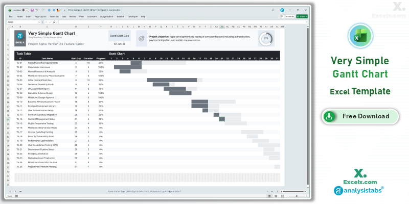 Simple Gantt Chart Template Excel (Free Download)